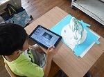 できあがった立体作品をタブレットで写真に撮り、工夫したことなどを書き込みます。独自に購入したタッチペンを使って書きました。
