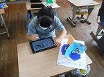 自分が紹介したい国とテーマを決めて、タブレットで検索。見つけたものを簡単な英文で紹介するという学習です。