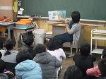 ただ、従来のような「密集」はつくれませんので、座席に着いたままで行いました。当然絵本が見えませんので、実物拡大機を使ったり、大型絵本で行っていただきました。また当然マスクです。口に動き、表情は、読み聞かせの大事な一部ですが、しばらくはこのスタイルで行っていきます。