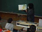 ホスト役は1年生です。いろいろな遊びを紹介して一緒に遊びました。お世話される立場からする立場への転換です。上手に、そしてやさしく園児に接する姿を見ると、成長したことを実感できます。園児にとっては、小学校の雰囲気を味わうこと、1年生にとっては、進級する自覚を芽生えさせることがねらいです。
