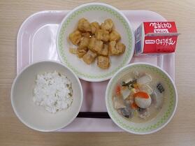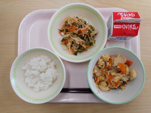 【麦ごはん 高野豆腐の卵とじ 大根サラダ 牛乳】