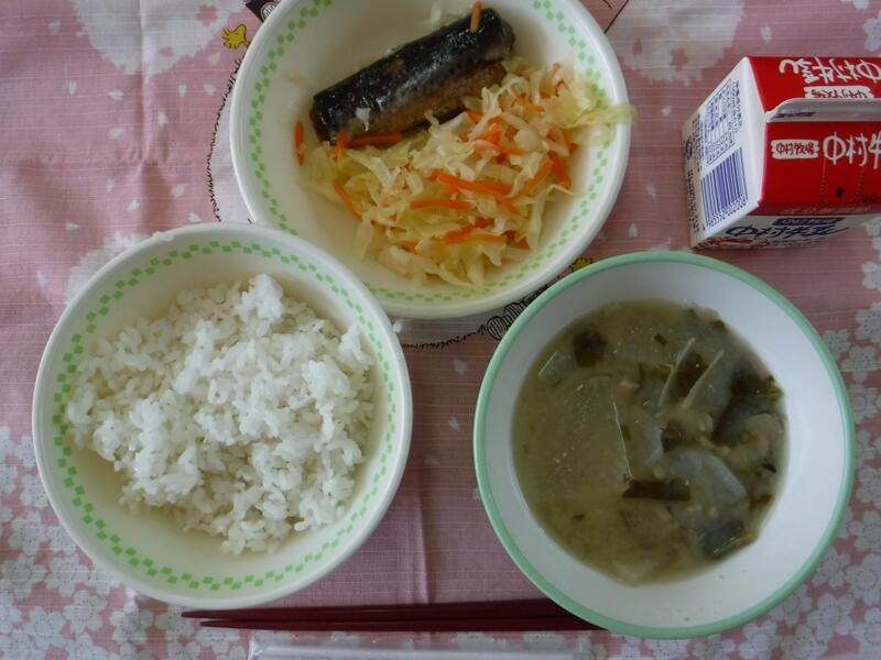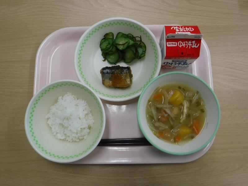 今日の小さいおかずは、さんまのみぞれ煮でした。これは、圧力をかけて骨までやわらかくしてあるので、カルシウムもとれて甘い味付けでおいしく食べられます。脳の働きや健康に良く、体を作るたんぱく質も豊富な青魚をたくさん食べてほしいので、給食では、月に1回は今日のようなさんまの他に、いわし、さばなどの魚を出しています。日本人は、昔から魚をよく食べていましたが、その量もだんだん減り、最近では肉の消費量に追い越されてしまいました。給食だと、調理方法が限られるため毎日というわけにはいかないので、お家でもどんどん食べてほしいです。骨があるので苦手という子には、刺身やお寿司などでもいいですね。(生の魚の方がDHAなどの栄養はたくさんとれますよ!)