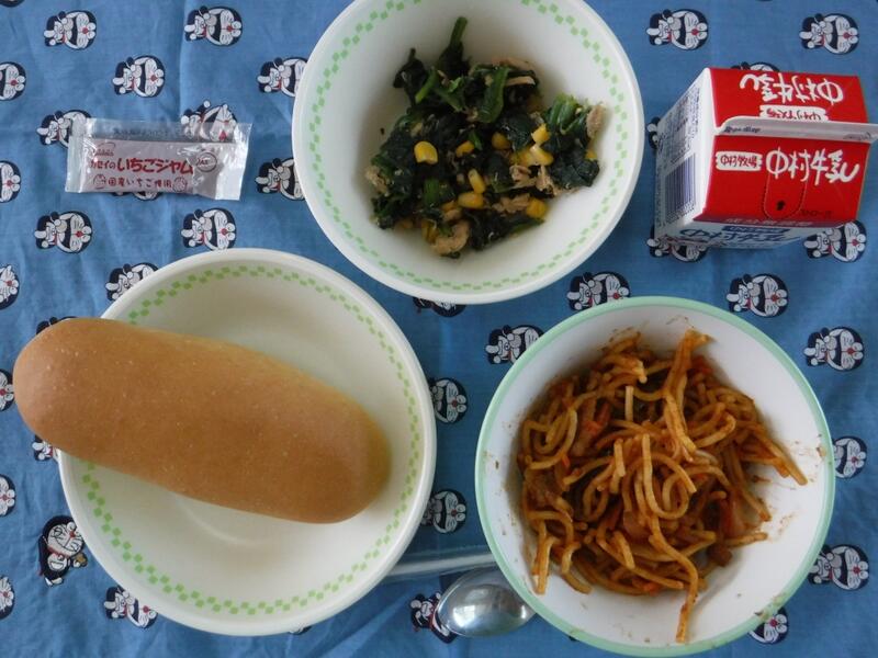 給食メニューは、やきそば、コーンラーメン、カレーうどんでした。