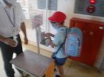 今朝は、職員の出勤を7時30分に前倒しし、専科等は靴箱で、学担は教室で子ども達を迎えました。目的は、「川南小における新しい生活様式」に基づき、感染対策を1日目から実行してもらうためです。教室に入る前に、うがい・手洗いを行うよう指導しました。