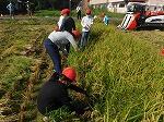 鎌を持つのは初めて、という子どもがほとんどです。保護者からは、大人も今は鎌を持つことはほとんどない。だそうです。最初はなかなか切れませんでしたが、20~30分たつと、要領を覚え上手になりました。コンバインを使いましたが、人力に比べていかに速いかを知ることも勉強でした。