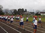 3校時は屋外。本校の運動場は、大変水はけがいいです。全校ダンス(川南音頭)と全校リレーでした。