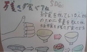 川小では、残食をなくすための取り組みがあります。このポスターは、給食を作っている方々に、感謝して、残さず食べよう!という内容になっています。みなさんも、残さずきれいに完食しましょう。(6年 松岡)