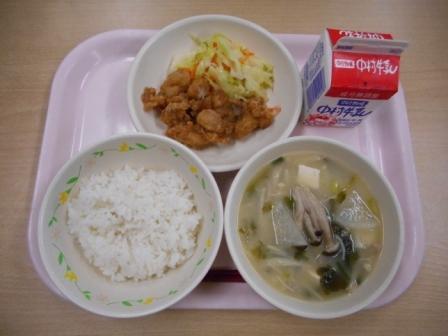 給食のからあげは、にんにくとしょうがの風味をきかせています。