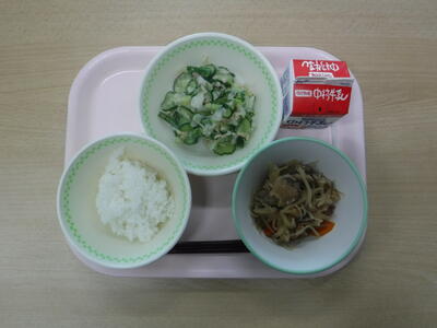給食メニューは、やきそば、コーンラーメン、カレーうどんでした。