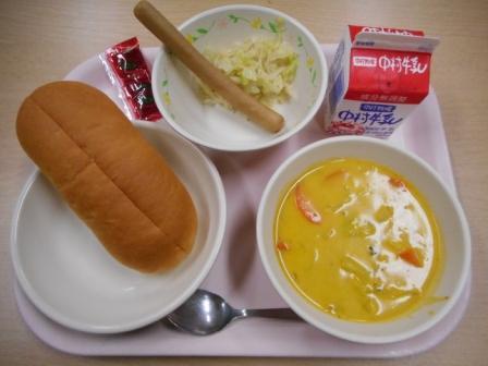 給食メニューは、やきそば、コーンラーメン、カレーうどんでした。