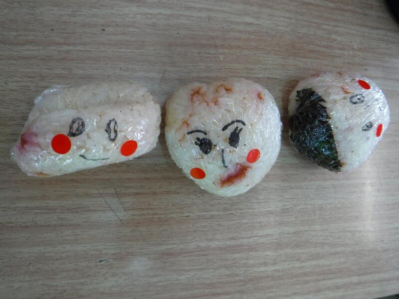 ↑おにぎりに顔を書いている児童もいました。(口の部分は梅味だそうです。)