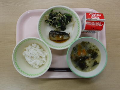 【麦ごはん さんまのかぼすレモン煮 ほうれん草のごまあえ 新玉ねぎのみそ汁 牛乳】