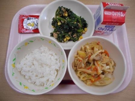 給食メニューは、やきそば、コーンラーメン、カレーうどんでした。
