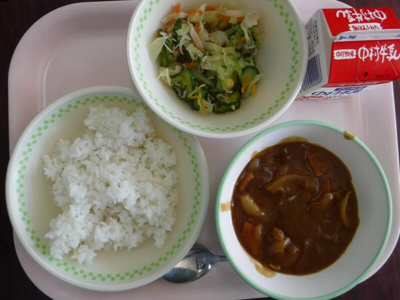 給食メニューは、やきそば、コーンラーメン、カレーうどんでした。