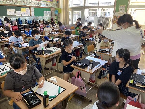 書写の時間の毛筆(習字)は、3年生から学習が始まります。今日は、2学期最初の習字を3年生がおこなっていました。