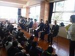学校側は、JRC委員会が応対しました。また今回は、図書委員会が参加し、読み聞かせを行いました。一部英語で行いました。学んだことを、地域社会に発表する場でもあります。