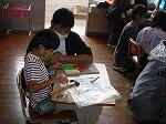 次は、メッセージカードの作成です。町の社会福祉協議会の方々に、色とりどりのカード作りを教えてもらいました。
