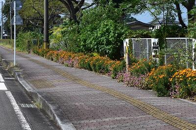 通山小の校門を出た歩道沿いは、かつて草が生い茂っていましたが、校長先生がこつこつ草を抜き、せっせと耕して花を植えてくださいました。夏にはセンニチコウとマリーゴールドが見事に花を咲かせ、登校してくる子ども達を明るい気持ちにしてくれました。