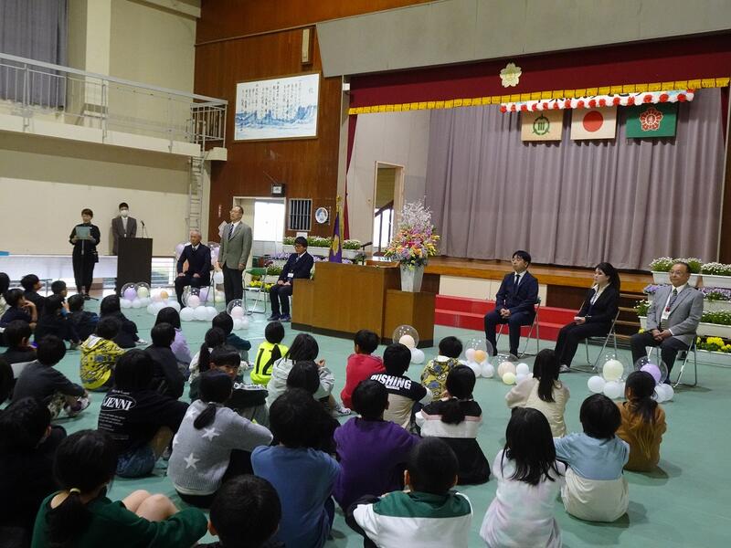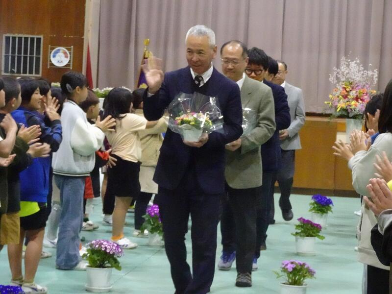 通山小を3月31日で去られる9名のうち6名の先生方とのお別れ式となりました。