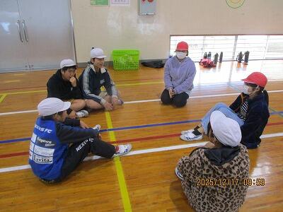 健康づくり推進部は、体力向上ばかりではなく「心の健康」も意図した体つくり運動を紹介し、実際に保護者の皆様にも活動を体験してもらいました。一気に和やかな雰囲気になった全体懇談会でした。