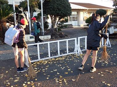 校門横のイチョウの葉が黄色く色づき、風が吹くたびに葉っぱを降らせてきます。学校沿いの歩道が黄色い葉っぱでいっぱいになっていました。12月22日(月)の朝、登校後の数名が、だれにお願いされたというわけでもなく自主的にほうきを持ってその葉っぱを集めてくれました。学校をきれいにしたいと思うボランティアの気持ちがすばらしい子ども達です。