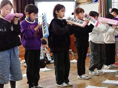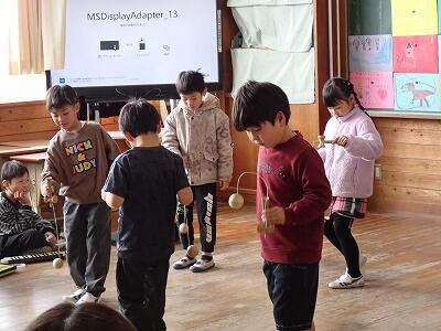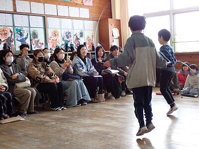 学年最後の参観日(2月20日)では、各学年が1年間学んだことをまとめて発表しました。低学年では、合奏やなわとび等の得意技を発表しました。