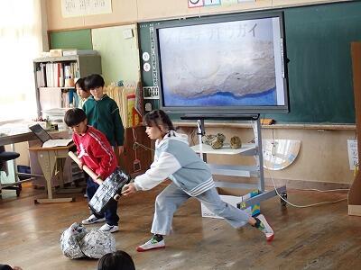 中学年では、総合的な学習の時間に調べたことを劇やスライドで分かりやすく表現できました。時にはクイズもあって、聞く人を楽しませていました。