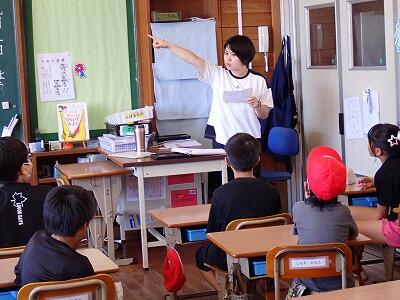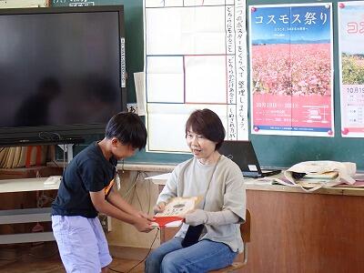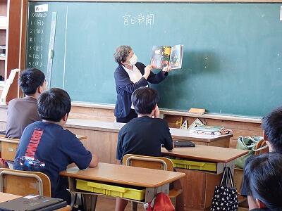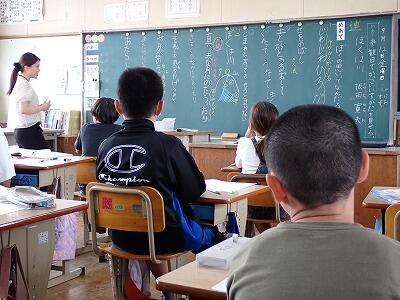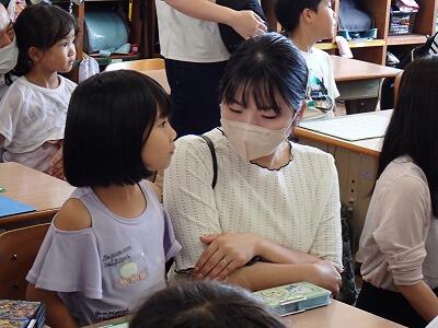 5年生のクラスでは、お話に実際に参加する活動(ズボン?パンツ?)が行われていて笑いありの楽しい時間を過ごすことができました。
