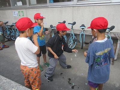 9月2日(火)、1年生は生活科の学習でしゃぼんだまあそびを行いました。