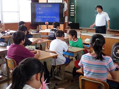 9月3日(水)、5年教室では弁護士による出前授業「いじめをなくそう」が行われました。日向市在住の弁護士の方が来校され、「いじめ」につおてお話ししてくださいました。「いじめ」は、する側にいじめて入りし気がなくても、されている側が「いじめだ」と感じていれば「いじめ」になること、いじめをする人だけでなく、見て見ぬふりをする人やはやしたてる人もいじめを受けている人を傷つけていることを話してくださいました。法律を守る仕事をされている弁護士さんのお話は説得力があり、5年生は真剣に聞いて、これからの友達関係に生かしていこうという気持ちを強くしました。