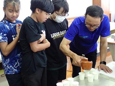 9月3日(水)、6年教室では生き方教室が行われました。今回は、地域のお茶農家の方を講師に招き、お茶農家の仕事ややりがいをスライドや動画で分かりやすく説明してくださいました。使う機械や設備を見て、6年生は驚いていました。その後、心を込めてお世話し収穫した茶葉を加工したお茶をごちそうになりました。お茶特有のさわやかな香りと風味に、心がホッといやされました。
