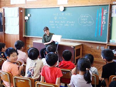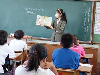 9月8日(月)の1時間前には、地域の読み聞かせグループ「ノバセンブラ」の方々(+教頭先生)による読み聞かせが各教室で行われました。