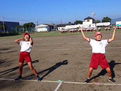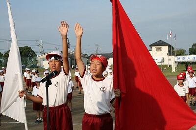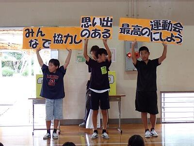 最後に、赤団・白団それぞれで応援リーダーの紹介をし、みんなでかけ声をかけて運動会に向けて気持ちを高めていました。