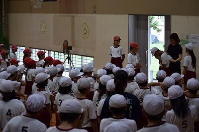 7月18日(金)3校時は、全校児童が体育館に集まって1学期の終業式が行われました。
