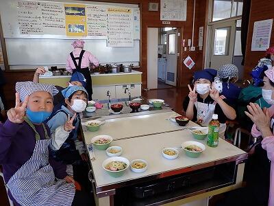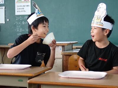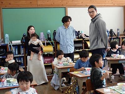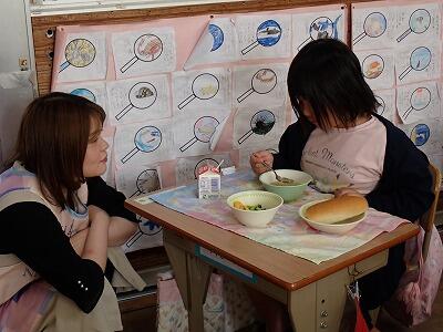 「20数年ぶりの給食です。なつかしい。とてもおいしいです」と話しながら給食を食べていらっしゃいました。