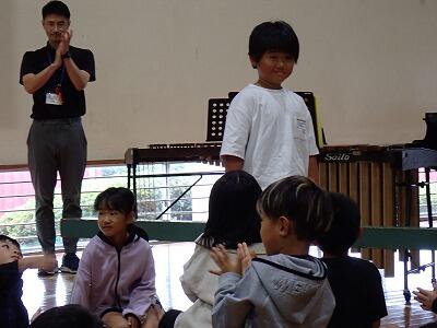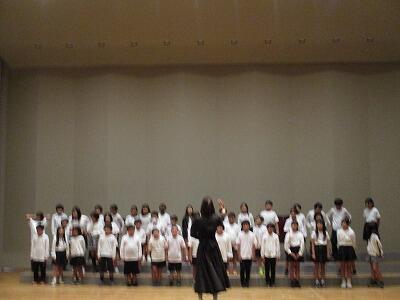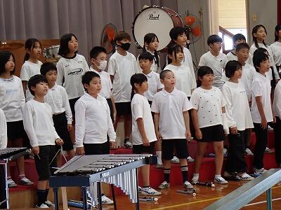 その前の10月29日(水)に、出場する4・5年生が全校の友達の前で歌と演奏を発表しました。