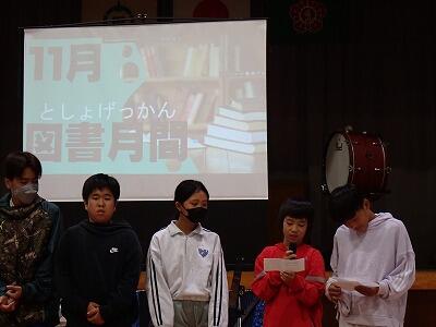 後半には、図書委員会の「11月の読書月間」の取組を紹介がありました。