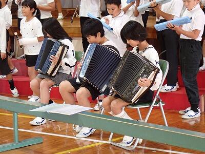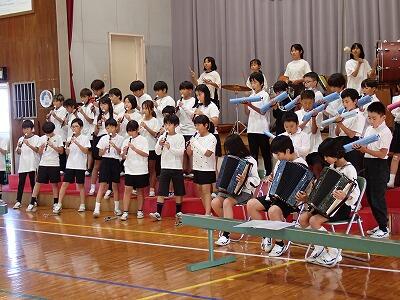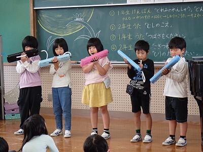 最後に、2年生が「こぎつね」と「もりのたんけんたい」の演奏をしました。