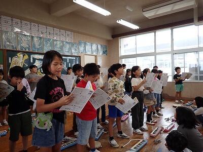 「花はさく」の透明感のあるきれいな歌声と、迫力ある「パイレーツ・オブ・カリビアン」の曲演奏を聞いて、「とってもうまかった」と感想を伝えていました。当日は多くの人の前で発表することになると思いますが、練習の成果を発揮できるように頑張ってください。そして、楽しんで発表してきてください。