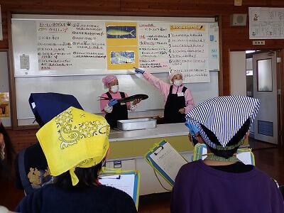 初めに川南小の栄養教諭の先生が「学校給食の7つの目標」を中心に、学校給食の大切さを説明いたしました。
