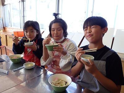 ひと昔前は、シイラを別名「猫またぎ」と呼んだそうです。なぜ「猫またぎ」かというと、『たくさんとれすぎて珍しくもないので、魚好きな猫さえも食べ飽きて見向きもせず、またいで通る』からきているそうです。しかし、近年では気候変動により海流が変化し、シイラの水揚げ量がぐんと減少し、シイラも珍しい魚になってしまいました。川南町の特産品「浜うどん」を味わいながら、環境問題や地域の伝統について考えました。