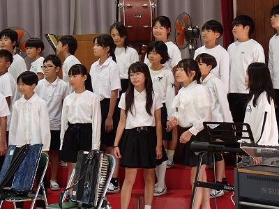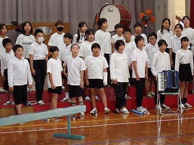 最後に、5年生児童の伴奏で校歌を元気よく歌いました。