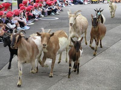 途中、道路の端に寄って座り、ヤギの行進を見届けました。