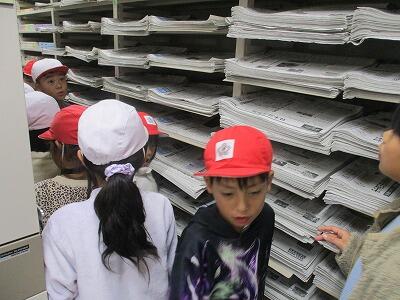 次に、同じ施設内にある町立図書館に行きました。入り口で説明を聞いた後、先ほどと同じようにバックヤードの新聞保管室を見学させてもらいました。