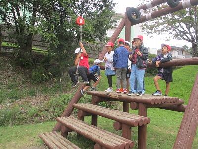 その後、パンダ公園に移動してお弁当を食べ、遊具で遊びました。