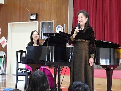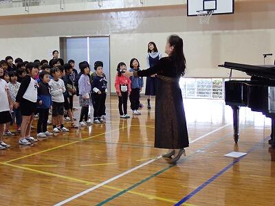 11月18日(火)、歌とピアノの演奏会がありました。みんなが知っている「崖の上のポニョ」「魔女の宅急便」「となりのトトロ」の曲や「サウンド・オブ・ミュージック ドレミの歌」を一緒に歌いました。特に、1・2年生は知っている曲が演奏されてウキウキ気分になったようです。身ぶり手ぶりを入れて、体を動かしながら大きな声で歌っていました。すてきなピアノと迫力ある歌声を聞くことができて、たいへんよい経験になりました。