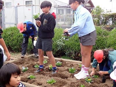 5・6年生ともなると、慣れた手つきでさっさと植え付けることができていました。