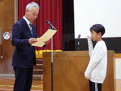 終業式の後、習い事で優秀な成績をおさめている児童へ賞状が渡され、全校児童で拍手を送り祝福いたしました。