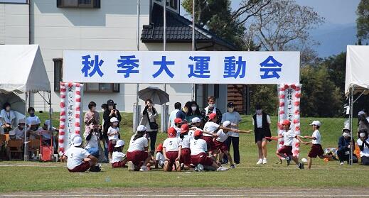 さわやかな秋空の下、通山小学校秋季大運動会を行いました。1年生から6年生まで、みんな一生懸命に頑張り、今年の運動会のスローガン「最後まであきらめないで楽しい運動会にしよう」を達成することができました。頑張った本校の子ども達はもとより、準備から片付けまで御協力いただいたPTAの方々、お忙しい中、ご来場いただき温かい声援や拍手をくださった来賓、保護者、地域の皆様、盆踊りを指導、生演奏してくださった盆踊り保存会の方々、かけっこを頑張ってくれた来年度の新入児の皆さん、等々・・・。たくさんの方々のお陰で素晴らしい運動会ができました。職員一同、心より御礼申し上げます。ありがとうございました。
