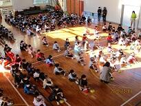 1年生は地域の高齢者クラブの方々と一緒に昔の遊び体験、2年生は保護者と一緒にクリスマスリース作り、3年生は海の生き物を観察し調べてきたことを保護者等に発表しました。4年生はマイスターの方々の指導の下、ミニ造園作りを体験しました。5年生は自分たちで育てたもち米で餅つき、6年生は南極地域観測隊に参加した方においでいただき「南極クラス」を実施しました。どの学年も貴重な体験ができた有意義な1日でした。